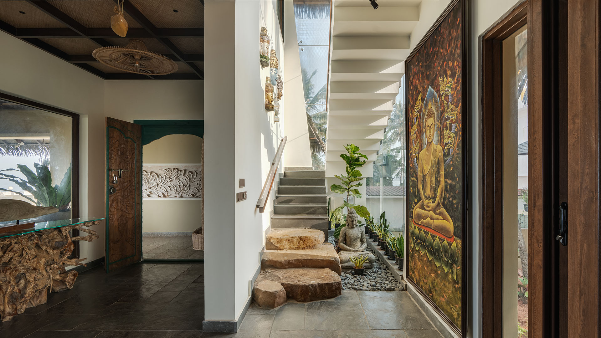 This home feels like an act of refusal. Spread across 3,600 sq ft on a narrow strip of land between the Arabian Sea and the backwaters of Padukere, Udupi, this holiday home proposes a gentler alternative to the daily rules of routine we tie ourselves to. Designed by Sonal Shetty Rao and Amit Rao of Vriksh, it draws from the spirit of a Balinese beach house that is relaxed, porous and unpretentious. Glass becomes the primary mediator between inside and out, framing expansive views while letting light and air do most of the talking.