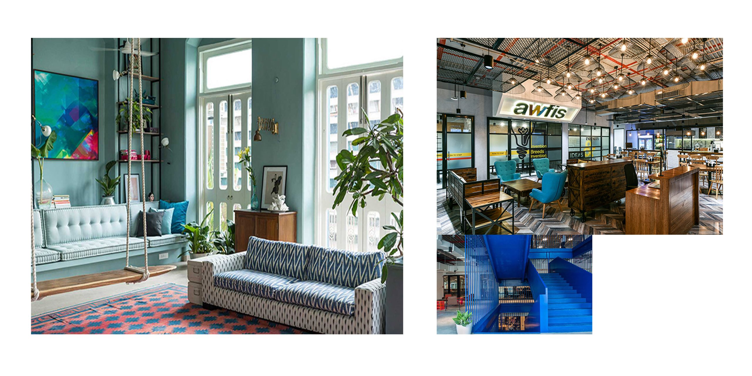 In bustling cities, new offices are always on the rise. There is no doubt that space is an issue in a crowded city like ours, so the introduction of coworking spaces has become a solution to the increasingly troubling question—where do we set up our workspaces? Today, the birth of co-working spaces has incepted a big change in the way companies work. Co-working spaces have just the right pop of colour and the perfect amount of design to make your working experience more aesthetically pleasing. The demand for more open-style coworking spaces is redefining how designers approach their commercial projectsAwfisWith office spaces in all the major cities of India, Awfis is one of the most well-designed co-working spaces. Amit Ramani founded Awfis in April 2015 with the aim to introduce a ‘Sharing Economy’ business model where one should be able to make ‘Just-in-time’ bookings for meeting rooms and work desks, while enjoying a flexible, hassle-free, productive work environment. They have launched the concept of Pro-WorkingTM that focuses on 3Ps- People, Proximity and Performance. The space embodies crisp minimal decor and the right colour palette to induce productivity. 32nd MilestoneWeWork brings to us 32nd Milestone in Gurugram, a co-working space designed to look chic with its contemporary decor and neon lighting. Unique to this building is a brainstorming room that gets the ideas flowing, a wellness room with serene interiors and an event space for office meet-ups.Embassy TechVillage Nestled in the IT hot spot of Bangalore, the Embassy Tech Village by WeWork office space is a creative oasis for entrepreneurs. This well-appointed collaborative workspace has state of the art private offices, and generous conference rooms that span six floors—not to mention a pet-friendly policy, which is particularly appealing to animal-lovers. This edifice allows you to launch your business or grow your existing team, with its varied amenities.Ministry of NewThis co-working outlet by Marlies Bloemendaal is a design-inspired collaborative workspace for independent professionals looking to be part of an international creative community. Crafted with elegance and an old-world charm this office has quirky details like cane lamps, cosy rugs, colourful seaters and refreshing displays. It is the perfect blend of tranquillity, modernity and minimalism. WeWork at Hebbal A global network of co-working spaces WeWork has launched a new space at Hebbal in Bengaluru. With multiple levels of coworking and private offices that cater to needs you didn’t even know you had. The Hebbal outlet is decorated with custom murals and offers a micro-roasted coffee bar and fresh fruit flavoured water. It also features an outdoor balcony, brainstorming room and an area for events.