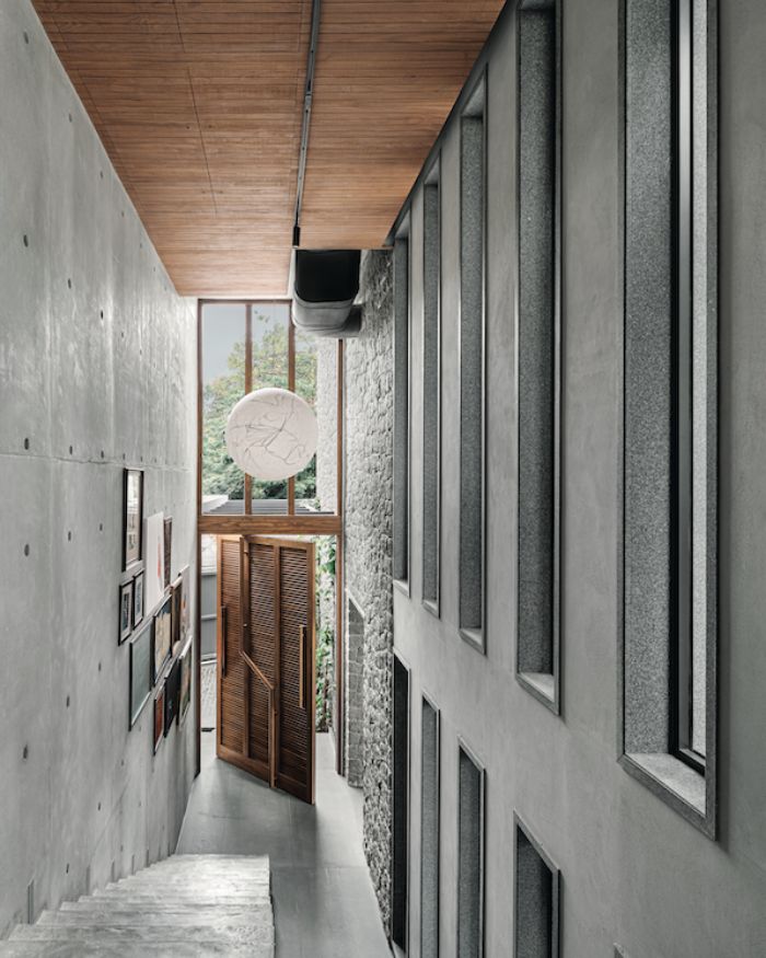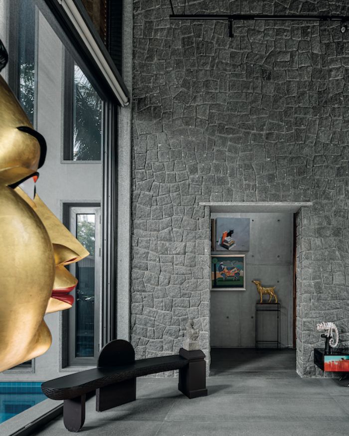 The duo’s shared love and respect for nature is like a recurring chorus all around — not just in the spectacular views of the lush foliage from every part of the house, but also in the way they have used 70 percent of the stone excavated from the site as construction material for their 6,000 sq ft home. Early on, the couple decided to follow an adaptive plan — one that would be mutable enough to embrace adjustments, deductions, additions and expansions as work progressed. Eventually, this also meant having to forfeit some cherished design ideas that they had long nurtured. For instance, they could not have a dedicated floor for parking to accommodate Aamir’s sizable fleet of cars, or for that matter a guest room on the ground floor, or a more extravagant drawing room. “We had scooped out a lot of usable spaces because of our insistence on protecting the trees and establishing the indoor-outdoor connection,” says Hameeda. “Also on the first floor, while the construction was going on, we decided to do away with the lounge so we could have a seamless connection with the courtyard. The sit-out on the upper floor was an afterthought, and was not part of the original plan.”