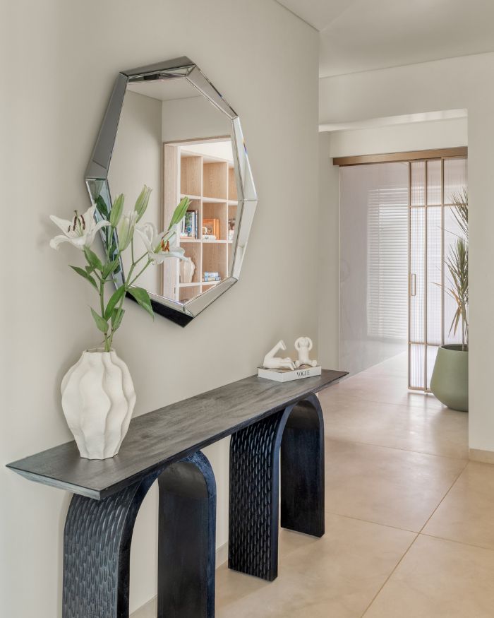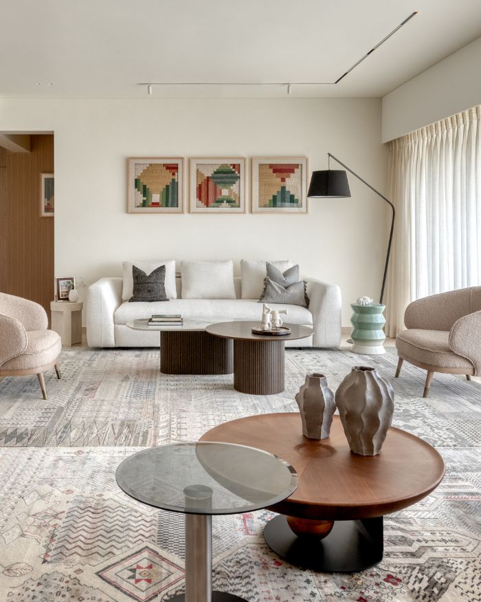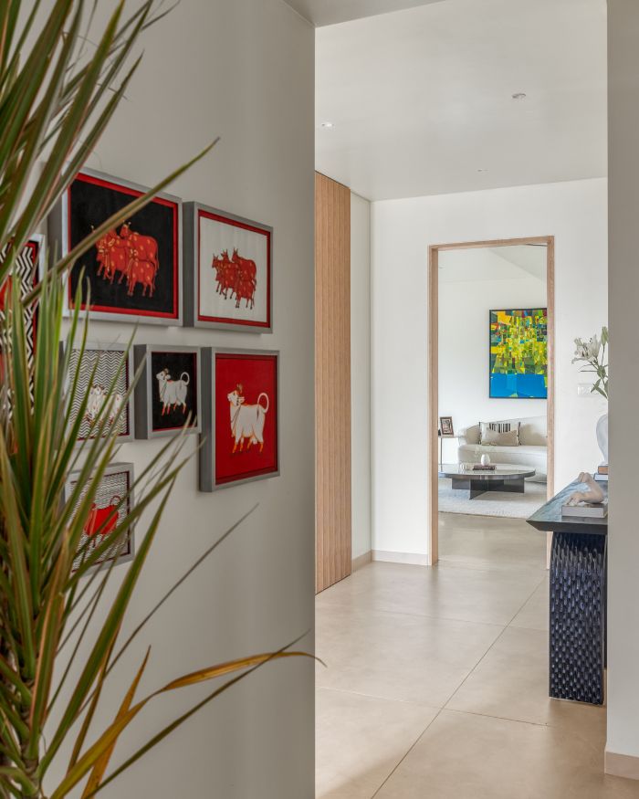 In a city like Mumbai, where horns ricochet off high-rises, and every skyline competes for attention, coming home to repose feels almost radical. For an elderly couple who asked for an all-white home, the brief could have easily slipped into sterile territory, the kind of beige-on-beige minimalism that feels more showroom than sanctuary. But this 4,800 sq ft residence by ZERO9 resists that fate. It is not cold, but pared down without being performative. There are gentle interruptions of colour and craft, so the space never veers into that unnerving, hyper-controlled still from American Psycho. Instead, it’s sun-soaked and deeply aware that its greatest luxury is the view: Mumbai stretching out in all its restless glory. Technology is discreet, maintenance is minimal, and the outside world is invited in as the primary artwork.